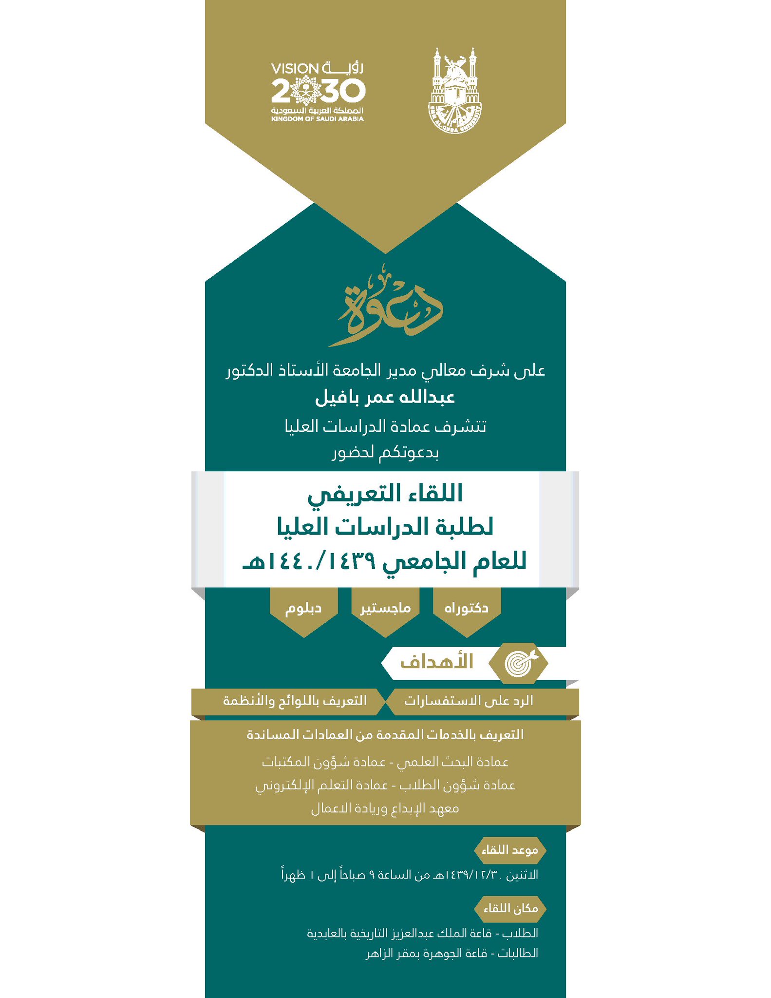 مدير الجامعة يعتمد قبول 1200 طالب وطالبة في الدراسات العليا للعام 1439 1440هـ إدارة العلاقات العامة الإدارة العامة للاتصال المؤسسي جامعة أم القرى
