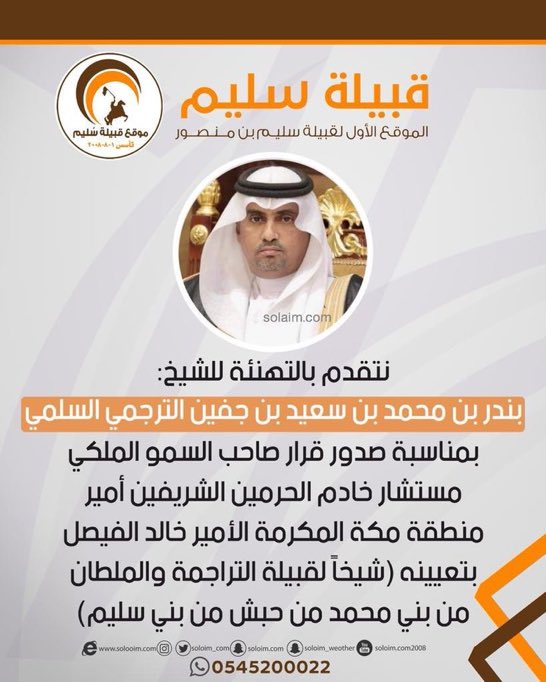قبيلة التراجمة On Twitter نقدم أجل عبارات الشكر والعرفان لمستشار خادم الحرمين الشريفين امير منطقة مكة المكرمة صاحب السمو الملكي الامير خالد الفيصل ابن عبدالعزيز آل سعود لتعيين الشيخ بندر بن