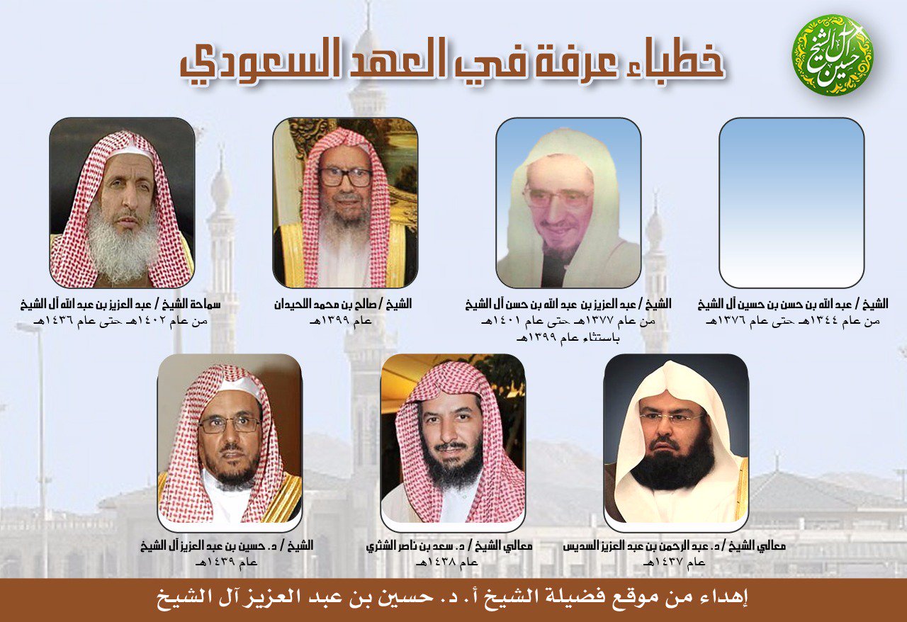 موقع الشيخ أ د حسين آل الشيخ On Twitter خطباء عرفه في العهد السعودي الشيخ د حسين بن عبد العزيز آل الشيخ سابع خطيب يعلو منبر نمره في العهد السعودي